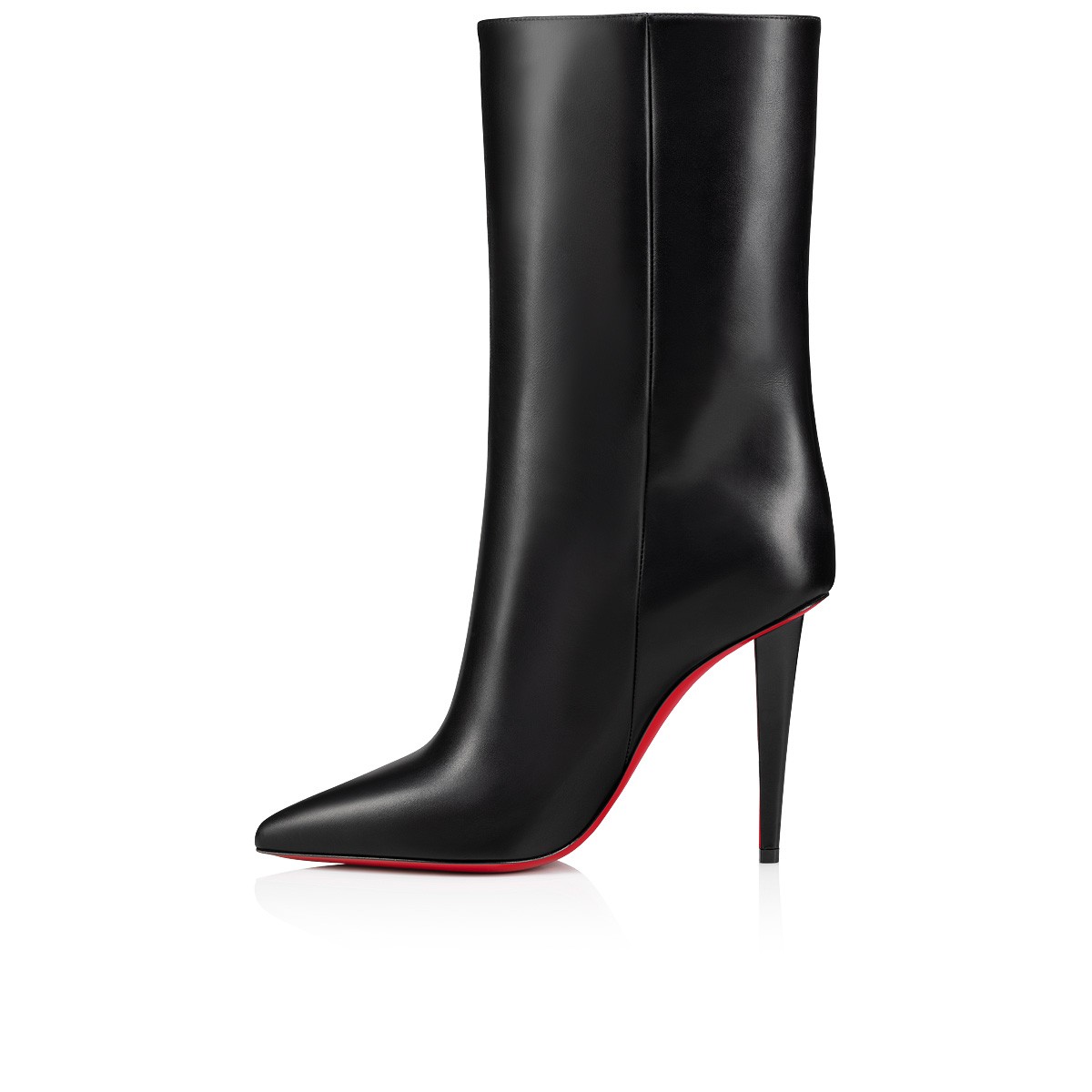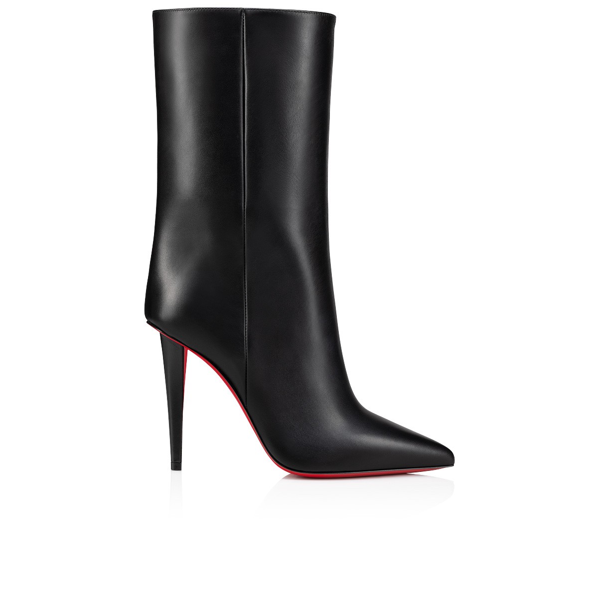 Showcasing Maison Christian Louboutin's creativity, the Astrilarge Booty has a 100 mm architectural stiletto heel built directly into the sole. This original boot rises just above the ankle and is crafted in black calf leather with understated finishing details. A sophisticated, urban design with sleek lines and a pointed toe.