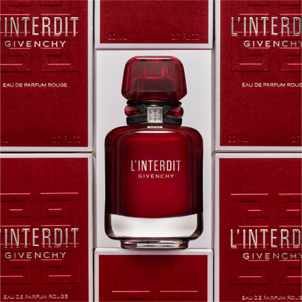 Givenchy's iconic red,Linterdit Eau de Parfum Rouge de Givenchy,a fiery fragrance that invites you to travel through the red line.