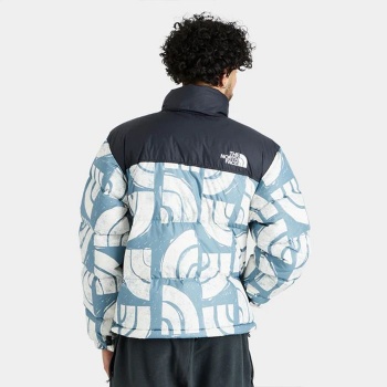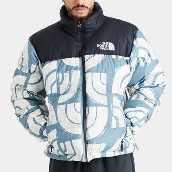 このアメリカ製メンズ1996レトロヌプシジャケットは、襟元に収納可能なフードを備え、軽量ながらも保温性を高めています。